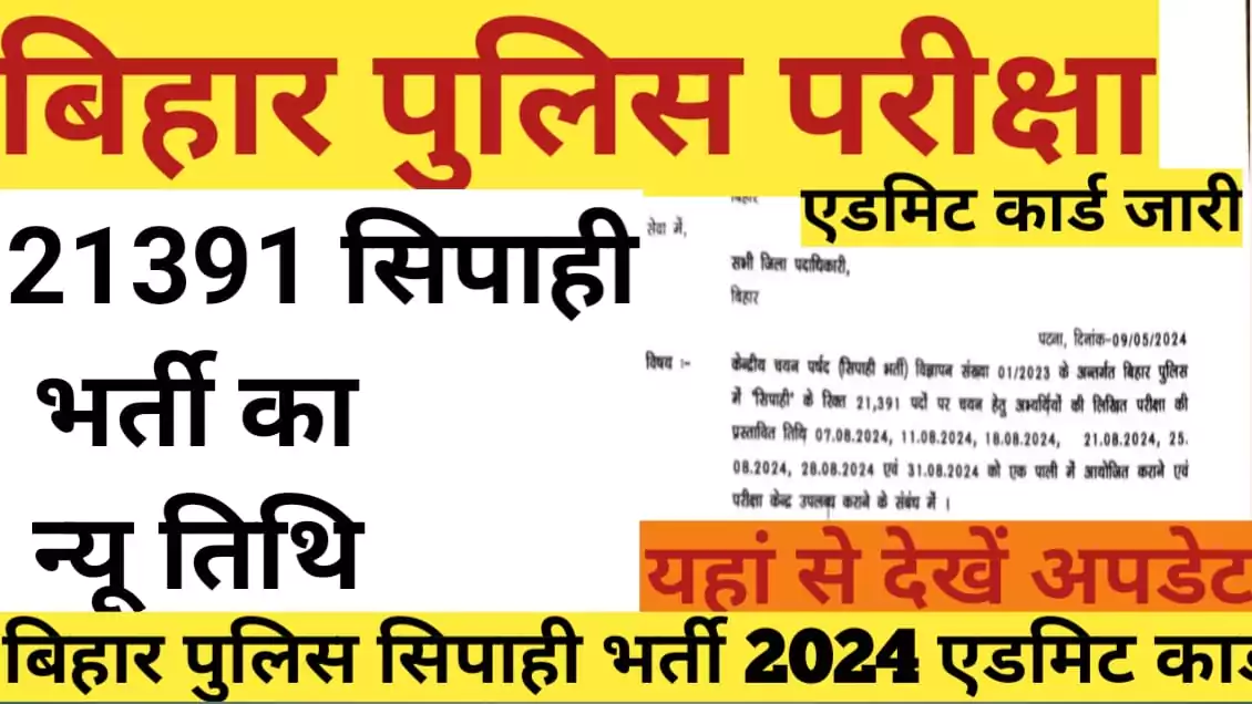 बिहार पुलिस नोटिफिकेशन भर्ती का न्यू डेट आ गया __ बिहार पुलिस सिपाही भर्ती 21391 पदों पर निकली हुई भर्ती का नया डेट आ गया है, जैसे कि आपको पता ही होगा कि पिछले साल 2023 में अक्टूबर माह में इसका एग्जाम होने वाला था प्रथम और द्वितीय पाली का एग्जाम हुआ था और पेपर